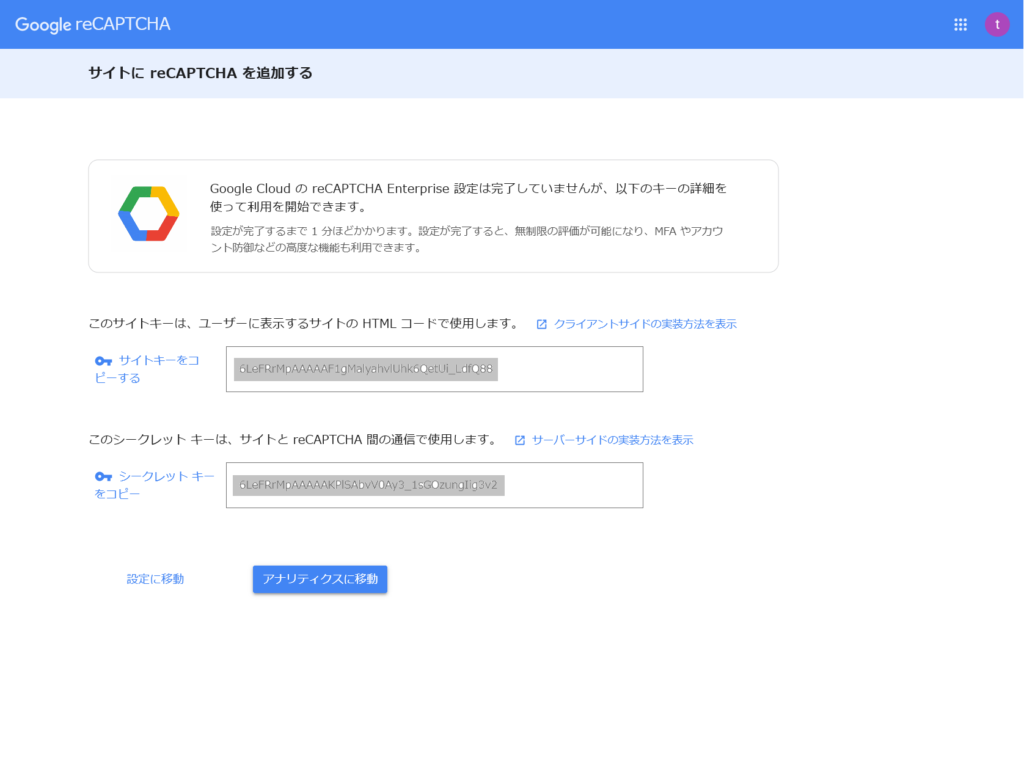 【手順1】reCAPTCHA v3のAPIキーを取得する
