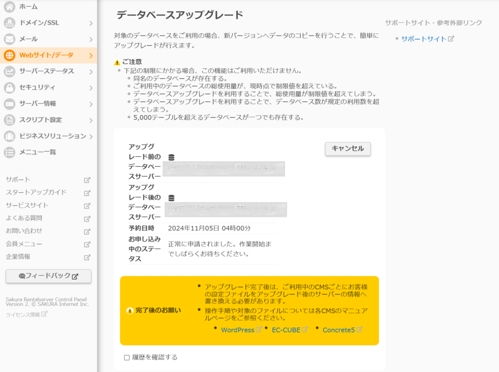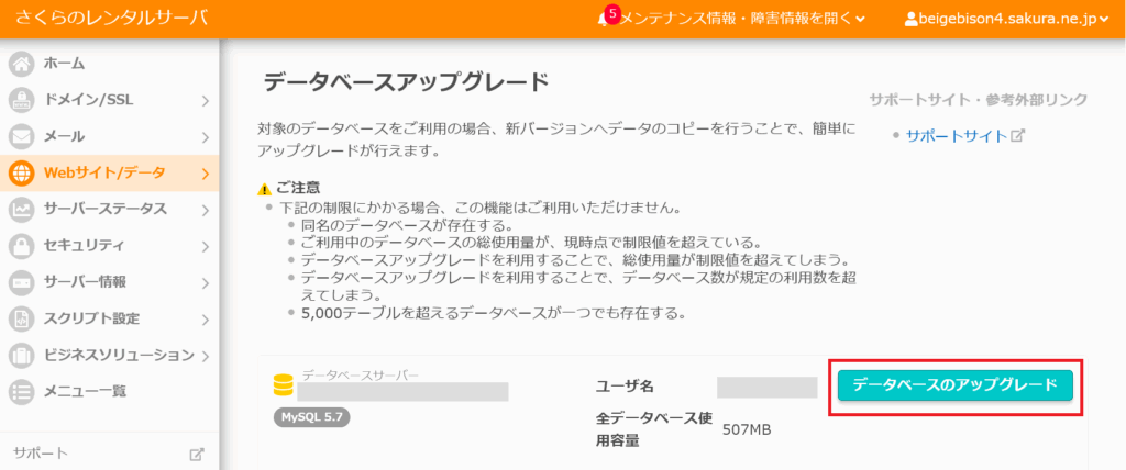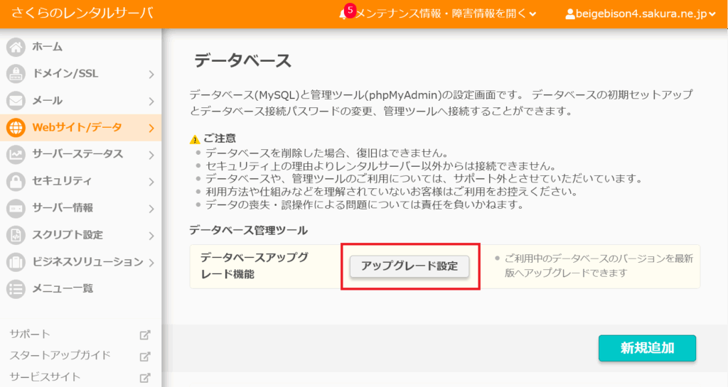 MySQLデータベースをアップグレードする手順(さくらのレンタルサーバー編)